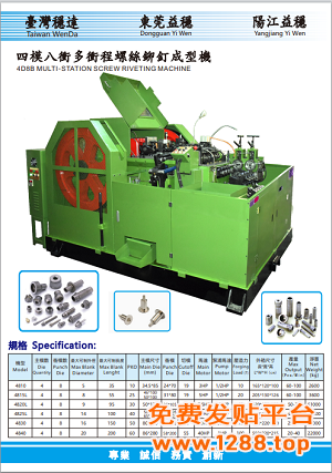 4、通过数十位益稳工程师精心组装。让益稳多冲程及多工位冷镦成型机具备高精度、高速度,高耐磨性,整机标配:带变频器、阳模退料,六个冲均带PKO,刹车,半密封型;在冷镦零件外径切料,变形量,长度,超载调试等方面满足非标螺丝多样化开发;如:台阶螺丝,大扁头螺丝,抽芯铆钉,电子通讯精密螺丝,