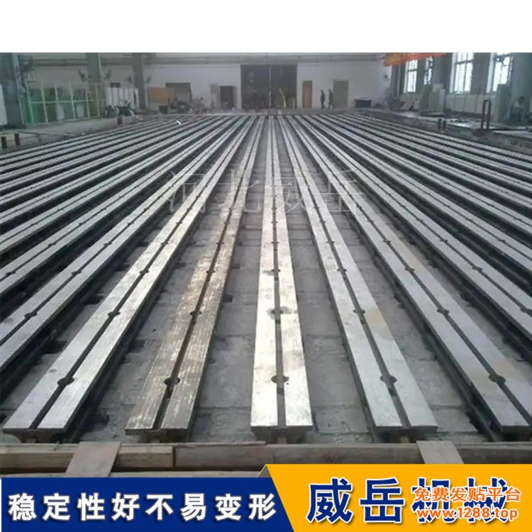 T型槽铸铁地轨是一种可以装配、试验、铸铁和检验大型设备的导轨。小巧方便运用灵活可随时拼接成大型的平台,节省了材料成本,占用的空间很小,是施工中经常用到的常见设备。可以根据各种各样的设备的支撑点来调整位置,利于对各种设备的操作。遇到体积比较大的机械设备可以把几个导轨或更多的地轨拼接起来,根据设备的固定点来设计制作、拼接成铸梁平台做为承载平台使用。