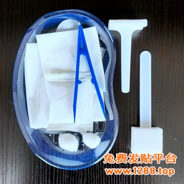 产品描述:本产品由治疗巾、备皮刀、薄膜手套、消毒刷(不含消毒剂)、镊子、棉球、辅料片组成,不含软皂液