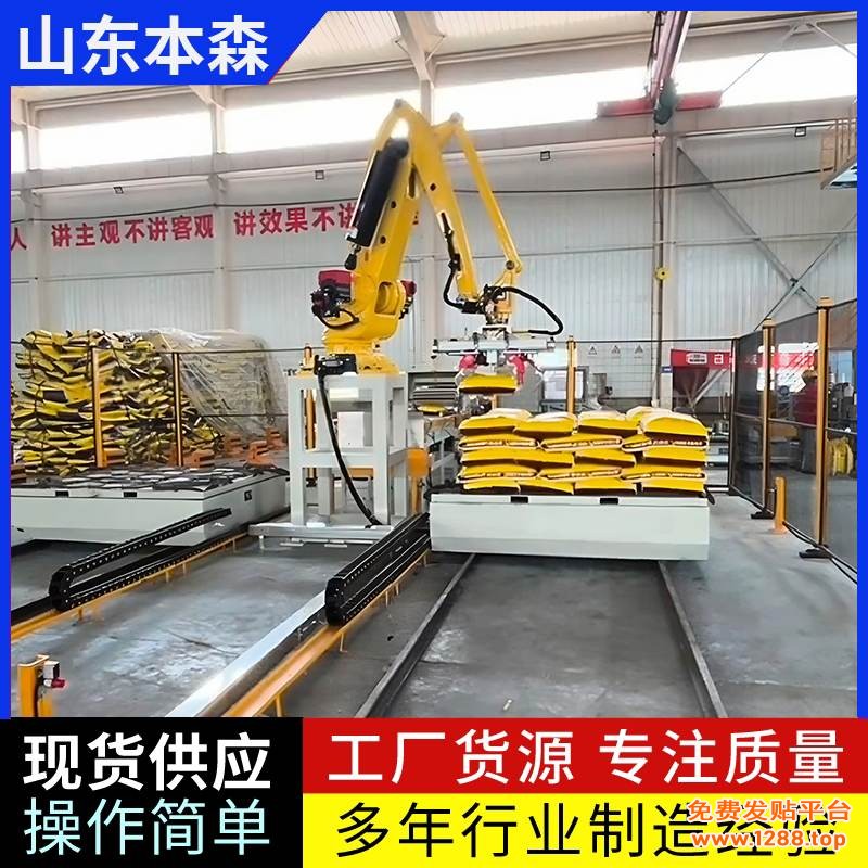 1.菌肥生产包装线:在复合微生物菌肥、有机无机菌肥等产品的灌装后环节,机械臂自动抓取菌肥袋并码放至托盘,替代人工搬运,降低劳动强度。