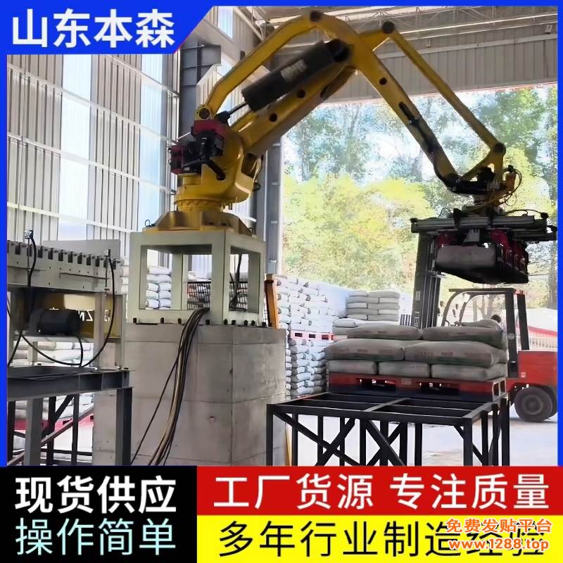 1.铝酸盐生产包装线:在铝酸盐制造企业的灌装后环节,机械手自动抓取铝酸盐袋并码放至托盘,替代人工搬运,降低劳动强度。